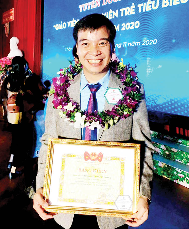 TS. Nguyễn Thanh Tùng nhận bằng khen “Giảng viên trẻ tiêu biểu” năm 2020 do Tỉnh đoàn trao tặng. Ảnh: NVCC