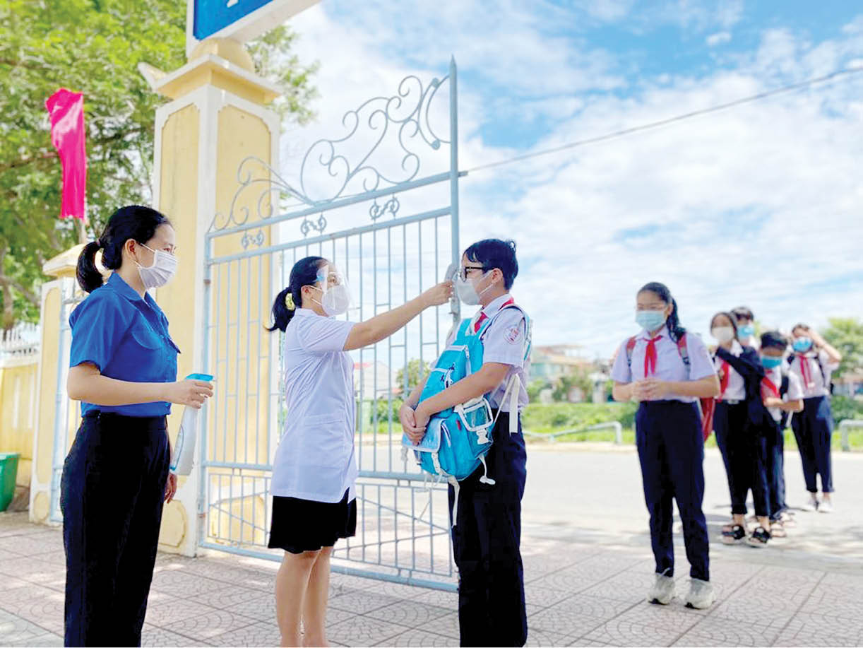 Vẫn còn nhiều trường trong toàn tỉnh học sinh chưa đi học trở lại do ở khu vực giãn cách. Phương án học trên truyền hình, học online tiếp tục phát huy. Nhiều trường đã cho học sinh đi học trở lại, song vẫn dè dặt và siết chặt khâu phòng, chống dịch. Cụ thể, các trường học giãn cách, mỗi lớp học chỉ có 20 em, không tổ chức bán trú. Đo thân nhiệt, đeo khẩu trang và rửa tay bằng nước sát khuẩn là yêu cầu bắt buộc. Học sinh đến lớp hạn chế tiếp xúc với bạn bè, giải lao ngồi tại chỗ, khuyến cáo các em đem nước đi theo, không uống nước tại trường. Không có cảnh phụ huynh tụ tập đón con, các trường chia các khối lớp để ra về ở các cổng, tránh tiếp xúc nơi đông người.