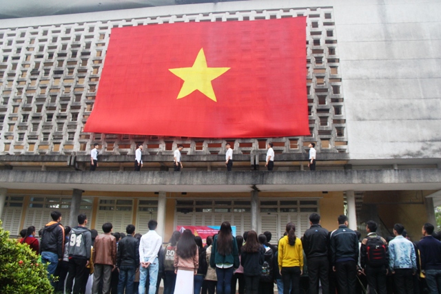 Trường ĐH Sư phạm - ĐH Huế trong một lần tiếp nhận những lá cờ Tổ quốc gửi về tặng Trường Sa và Lý Sơn