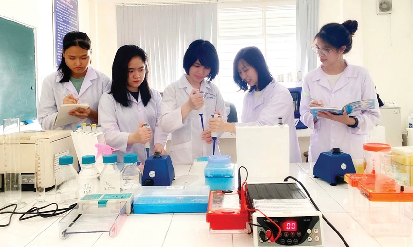 | Sinh viên Trường Đại học Sư phạm, ĐHH gắn lý thuyết với thực hành |