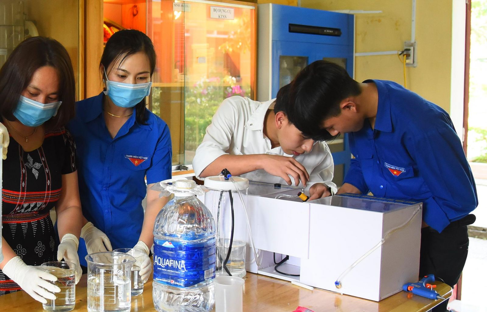 Thời gian thử nghiệm vừa qua, nguồn dung dịch sát khuẩn của nhà trường được trao tặng từ Trường THPT chuyên Quốc Học, Trường cao đẳng Công nghiệp Huế và Viện nghiên cứu khoa học miền Trung.