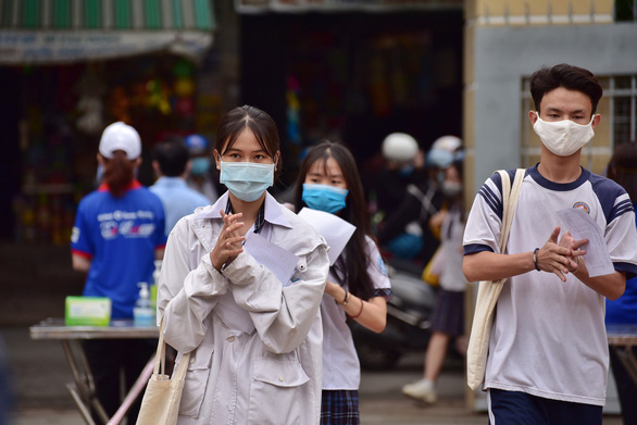 Ghi nhận tại điểm thi THPT Nguyễn Thái Bình (Quận Tân Bình, TP.HCM), điểm thi và các thí sinh đều tăng cường hơn nữa biện pháp phòng chống dịch. Tại điểm thi này, ngay cổng vào trường đặt 4 bình xịt rửa tay khử khuẩn dành cho thí sinh và bố trí lực lượng tiếp sức mùa thi, cán bộ điểm thi yêu cầu thí sinh xịt rửa tay trước khi vào trường.