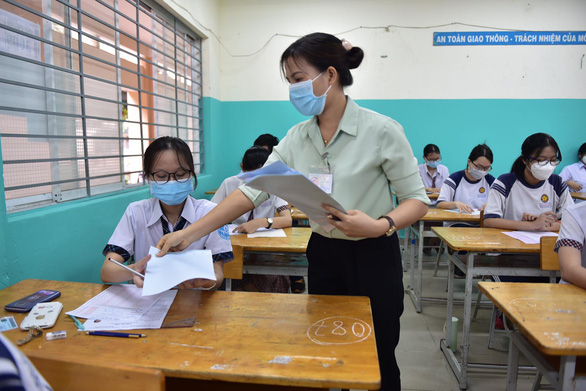 Riêng Đồng Tháp tối qua đã quyết định dừng 1 điểm thi có 257 thí sinh dự thi sau khi phát hiện có thí sinh dương tính qua test nhanh. Bài thi môn văn và toán mà các thí sinh đã làm trong ngày 7-7 sẽ được niêm phong, khử khuẩn.
