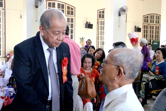 Phó Bí thư Thường trực Tỉnh ủy Phan Ngọc Thọ bày tỏ sự vui mừng, xúc động khi trở lại trường cũ, được gặp gỡ các cựu giáo chức