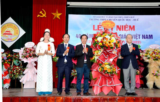 Diễn văn tại buổi lễ, Hiệu trưởng Trường THPT Chuyên Quốc Học Huế Nguyễn Phú Thọ khẳng định, phát huy truyền thống tốt đẹp của dân tộc, nhiều thế hệ thầy cô Trường THPT Chuyên Quốc Học Huế luôn nỗ lực, không ngừng đóng góp công sức, trí tuệ đào tạo cho đất nước những công dân có tài, có đức, có ích cho xã hội.