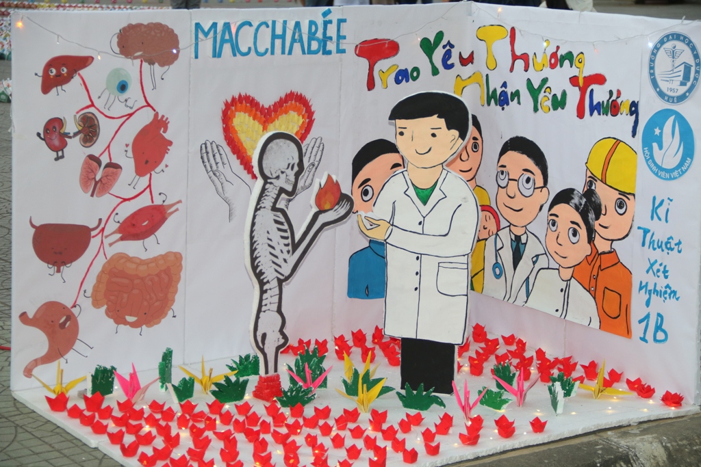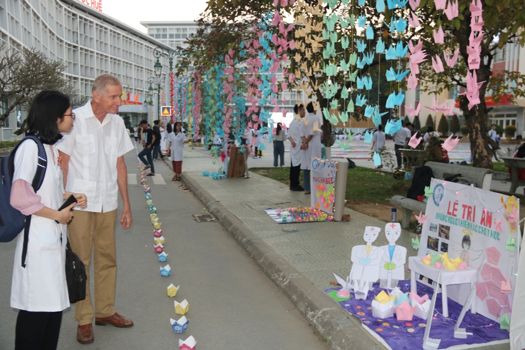 Ngay từ buổi chiều, Trường ĐH Y dược đã thu hút những người quan tâm đến lễ hội với phần trang trí 10.000 con hạc giấy