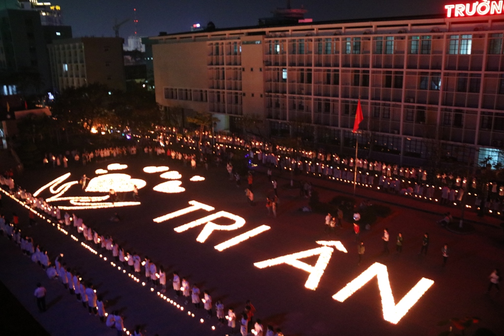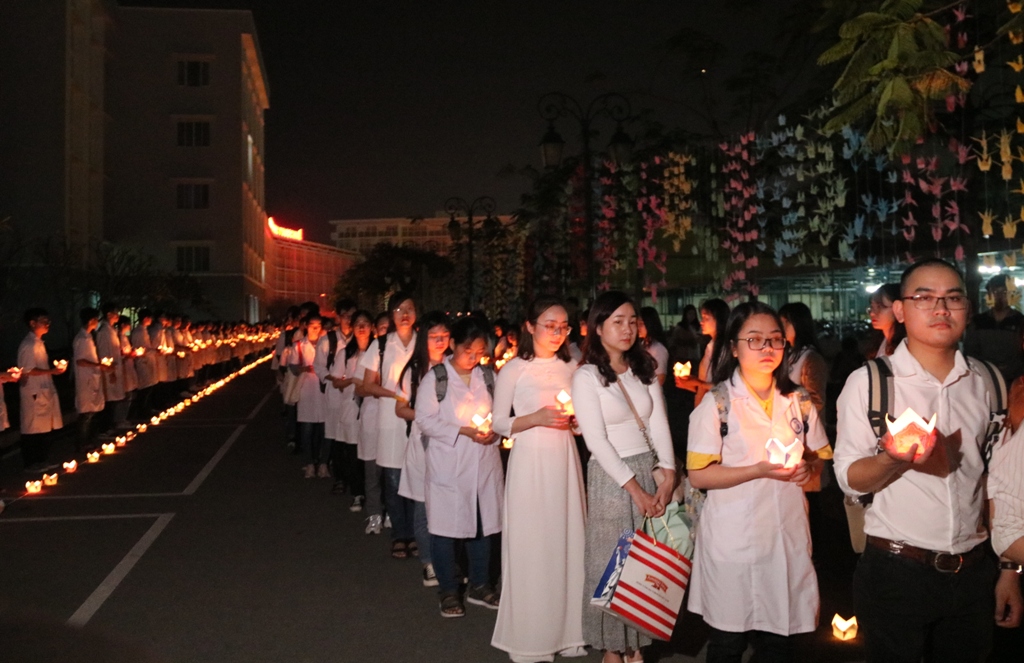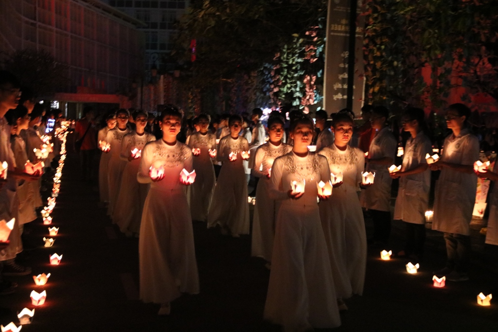 Hàng trăm sinh viên cầm ngọn đèn trên con đường tri ân