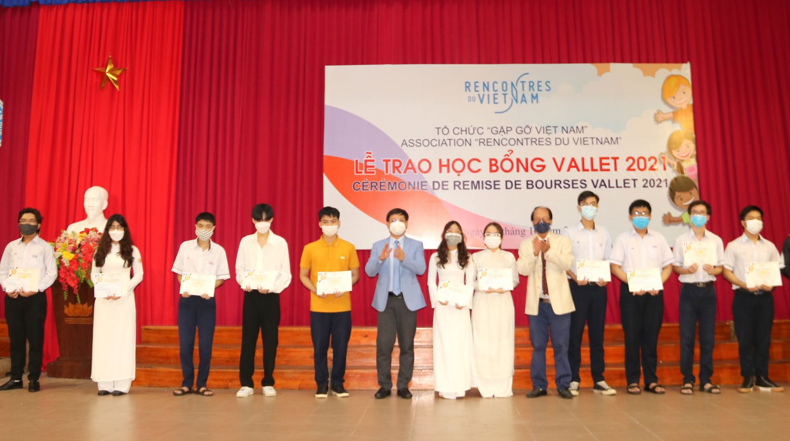 HNN.VN - Chiều 29/10, tại Trường đại học Sư phạm, Đại học Huế, Tổ chức Gặp gỡ Việt Nam trao học bổng Vallet năm 2021 cho các học sinh, sinh viên xuất sắc trên địa bàn tỉnh. Đến dự có ông Nguyễn Thanh Bình, UVTV Tỉnh ủy, Phó Chủ tịch UBND tỉnh.