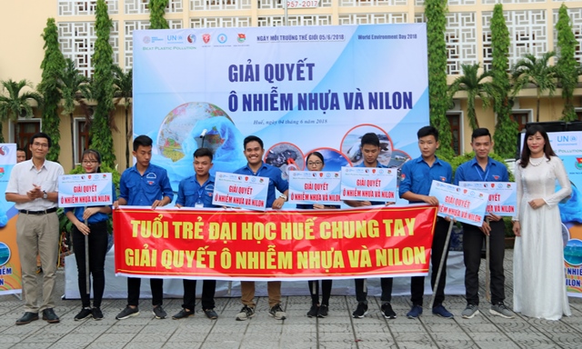 HNN.VN - Sáng 4/6, tại Trường đại học (ĐH) Sư phạm – ĐH Huế diễn ra chương trình ra quân “Giải quyết ô nhiễm nhựa và nilon”.