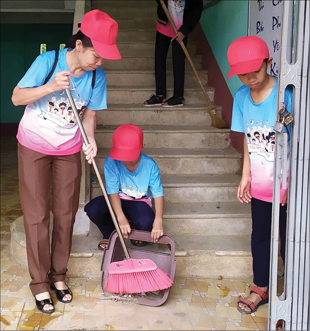 Học sinh Trường Trần Hưng Đạo dọn vệ sinh chiều thứ sáu hàng tuần