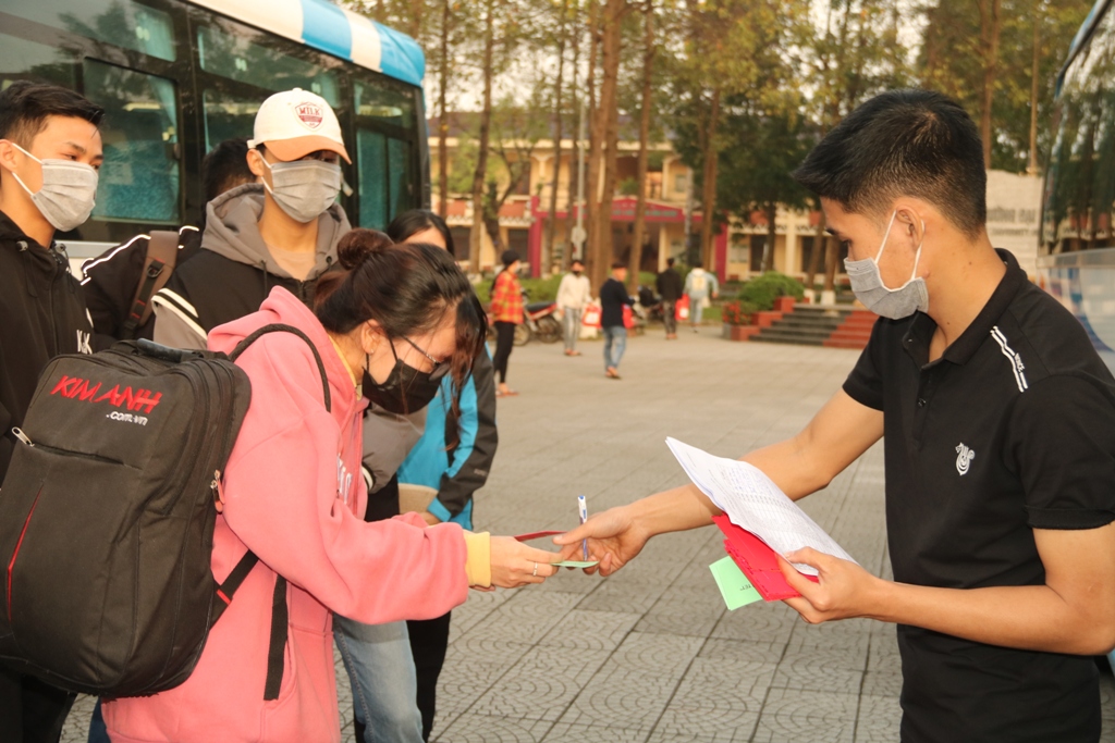 Kiểm tra thông tin sinh viên và nhắc nhở sinh viên tuân thủ các khuyến cáo phòng dịch trước khi lên xe