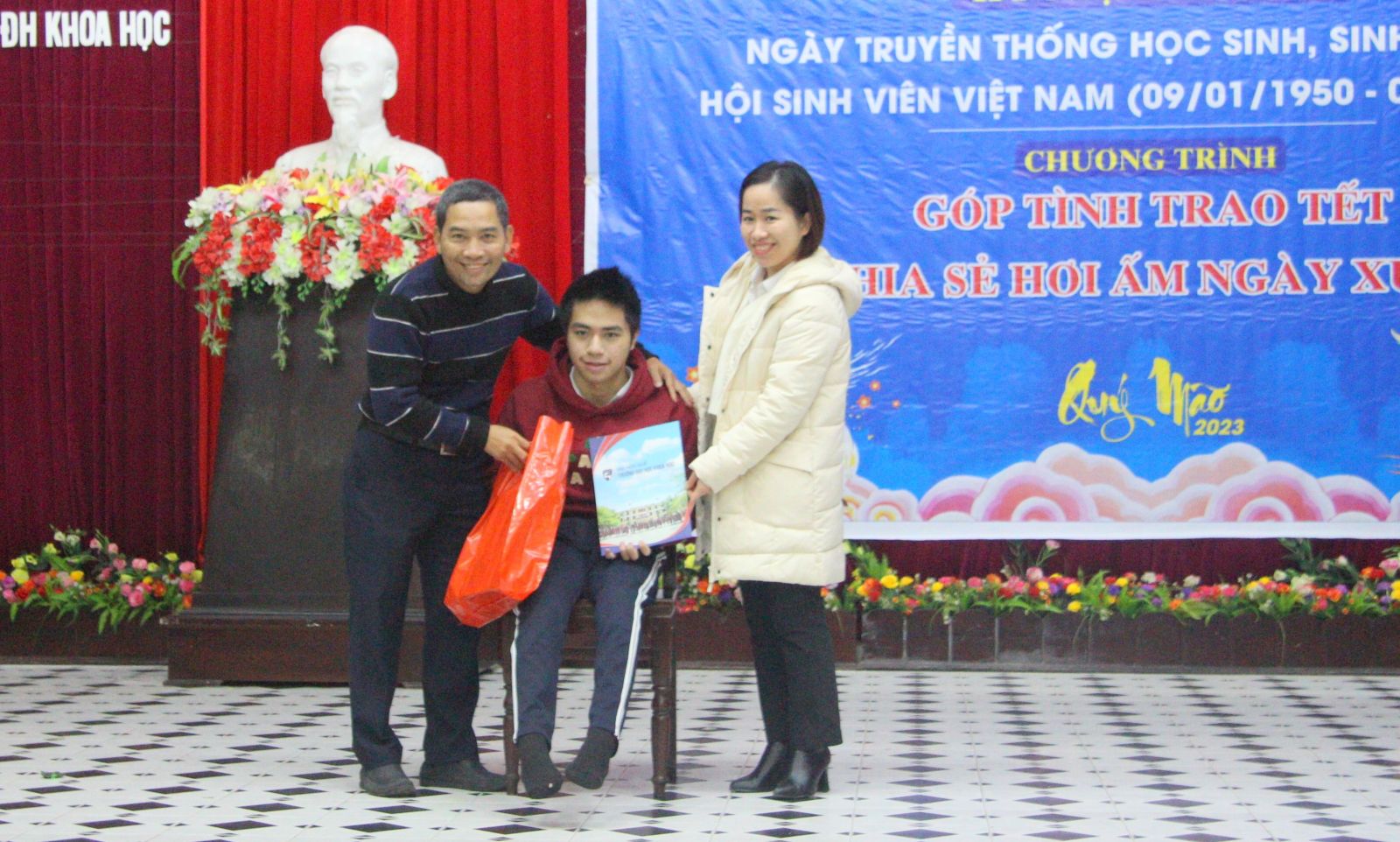 Còn tại Trường ĐH Khoa học, nhiều trường hợp có hoàn cảnh khó khăn, có trường hợp bị khuyết tật, sinh viên thuộc gia đình hộ nghèo, bị ảnh hưởng nhiều bởi mưa lũ đã có một chung một niềm cảm xúc tại chương trình “Góp tình trao tết - chia sẻ hơi ấm ngày xuân”.