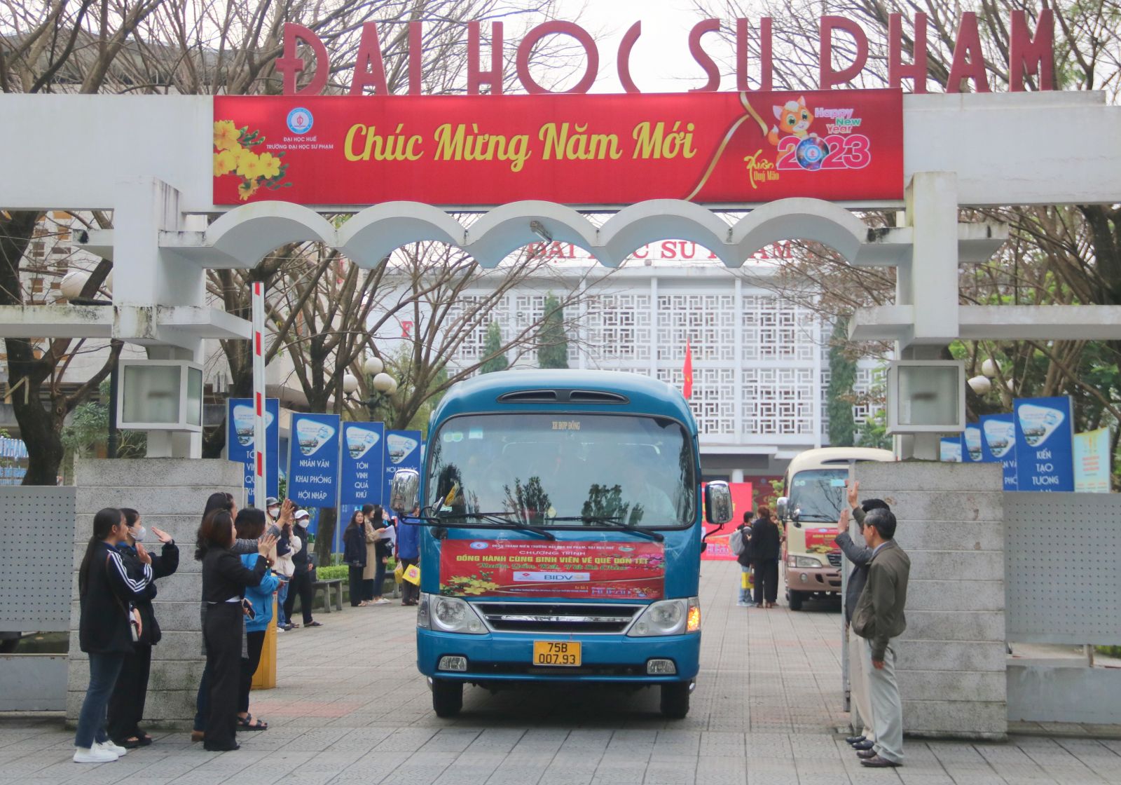 Lãnh đạo Trường ĐH Sư phạm ra tận cổng chào tạm biệt sinh viên về quê đón tết
