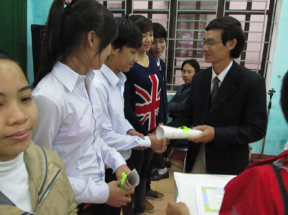 Ông Trịnh Minh Hiếu, Phó Hiệu trưởng Trường Trung cấp nghề Huế trao giấy khen cho các học viên đạt thành tích nổi bật của REACH khoá 25