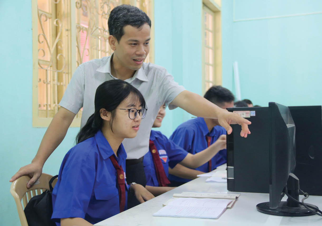 Giáo viên Trường THPT Hai Bà Trưng hướng dẫn học sinh thực hành tin học