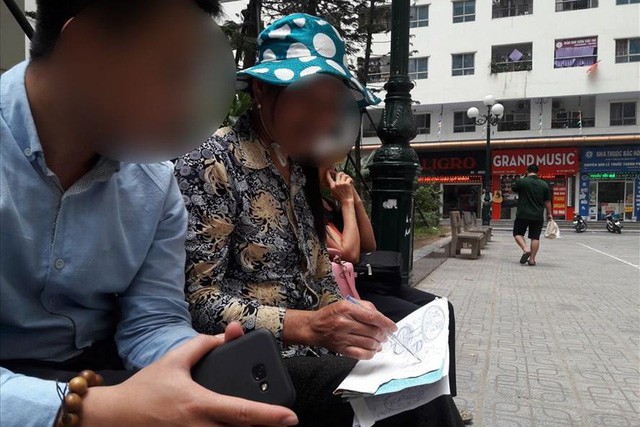 Một nhóm tự xưng là thành viên "Hội thánh Đức Chúa Trời" đang truyền đạo tại chung cư Linh Đàm, Hà Nội. (Ảnh: Trang Hà)
