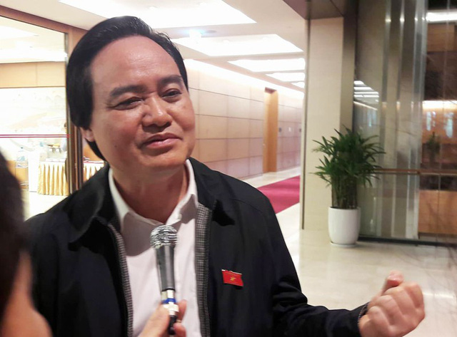 Bộ trưởng GD-ĐT Phùng Xuân Nhạ bên hành lang Quốc hội sáng 16/11.