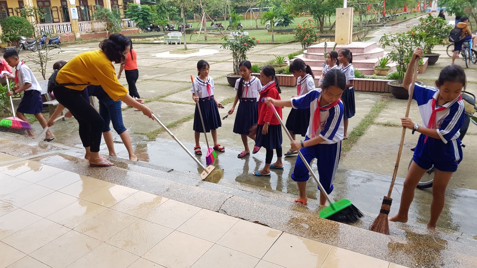 Các trường học ở Quảng Điền xử lý môi trường sau lũ