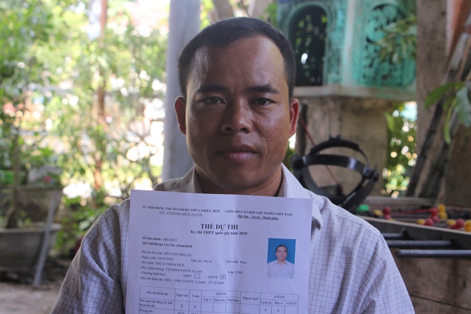 HNN.VN - Trong số hàng ngàn thí sinh trên địa bàn tham dự kỳ thi THPT Quốc gia 2019, thí sinh Hồ Văn Nhuận (37 tuổi, thị trấn A Lưới, huyện A Lưới) được xem là nhân vật đặc biệt.