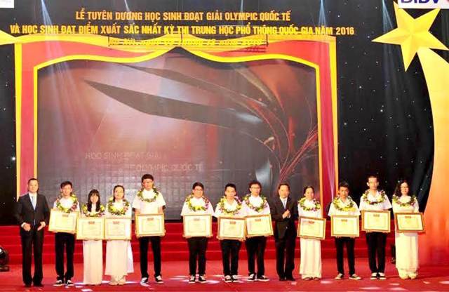 Hoài Lâm tại lễ tuyên dương do Bộ Giáo dục - Đào tạo tổ chức tại Hà Nội (thứ 2 bên phải)