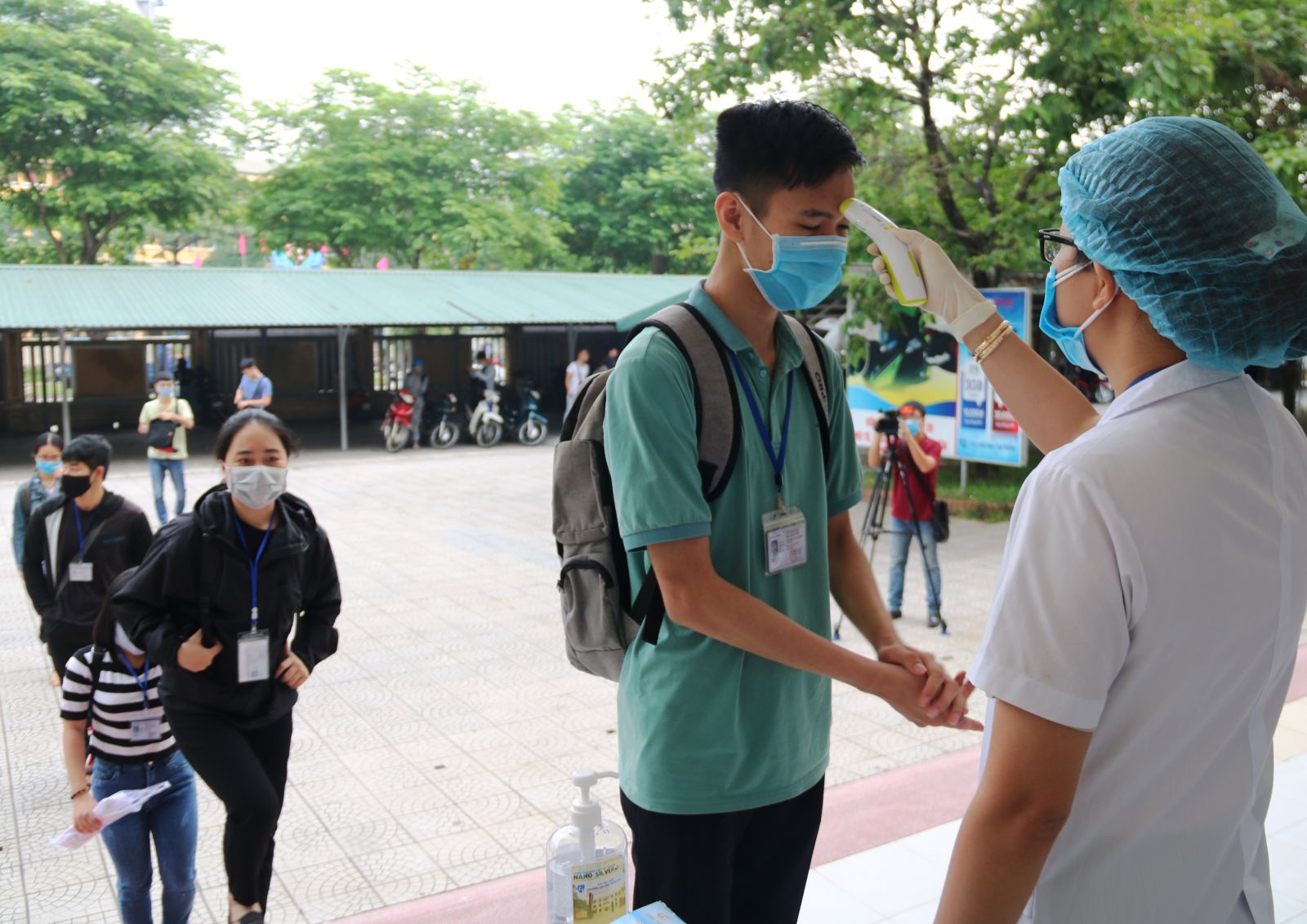 Sinh viên Đại học Huế được kiểm tra y tế khi quay trở lại lớp học. Ảnh: LT