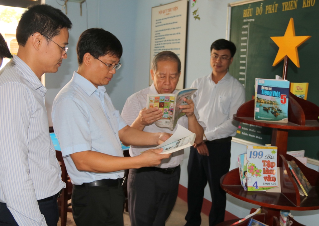 Kiểm tra sách tại thư viện Trường tiểu học Trạch Phổ