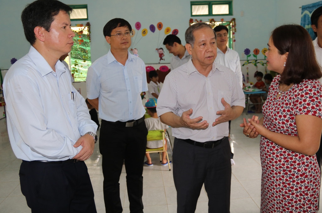 Chủ tịch UBND tỉnh Phan Ngọc Thọ lắng nghe và chia sẻ các vấn đề trong giáo dục với đại diện lãnh đạo Trường mầm non Phong Sơn II