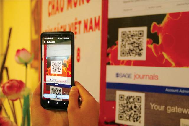 Sinh viên quét mã QR truy cập vào thư viện điện tử