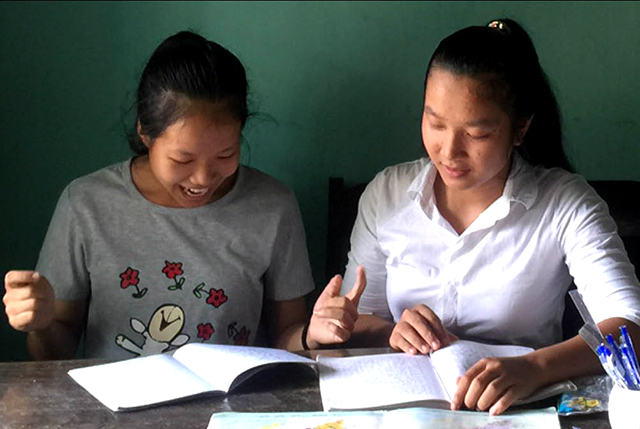 Bùi Thị Kiều (bên phải) cùng bạn học nhóm