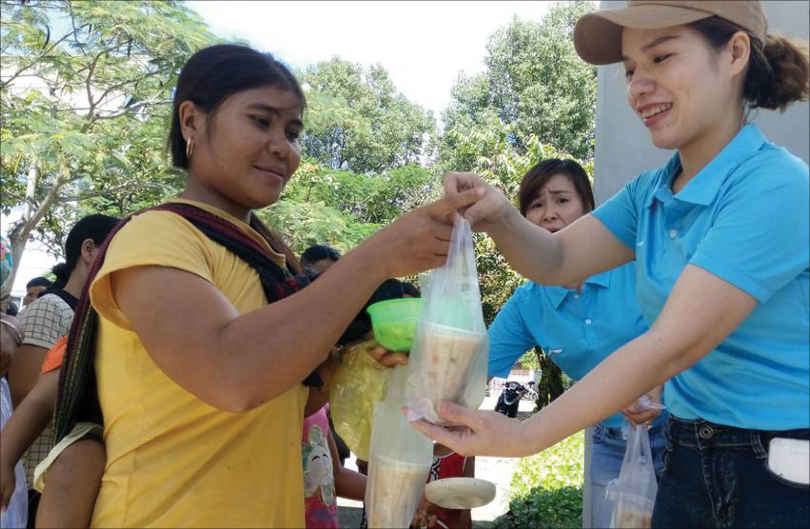 Tại Bệnh viện huyện A Lưới, chị Niên (40 tuổi, trú tại xã A Roàng) kể, chị nằm viện gần tháng nay. Nhà nghèo lại neo người nên mỗi trưa chủ nhật có cháo từ thiện của các cô giáo, chị mừng, ngóng lắm. Ông Vấn (78 tuổi, trú tại xã Sơn Thủy), bà Hà (60 tuổi, trú tại xã Hồng Kim) cũng chung cảm xúc khi đã từng được tặng những phần cháo bổ dưỡng. Đúng 11 giờ, những thùng cháo bốc khói, thơm ngon được “đội quân của Úy” mang đến. Những gương mặt còn hồng lửa bếp. Các cô nhanh chóng vào việc. Người đến các phòng bệnh mời bệnh nhân (đã nhận phiếu vào buổi sáng), người kê bàn, soạn các dụng cụ chia khẩu phần cháo. Người trao quà tặng thêm nụ cười tươi, người nhận trao lại lời cảm ơn mộc mạc. Chẳng mấy chốc, hơn 80 phần cháo đã được trao hết. Lúc này chị em mới gạt mồ hôi nhìn nhau cười nhẹ nhõm.