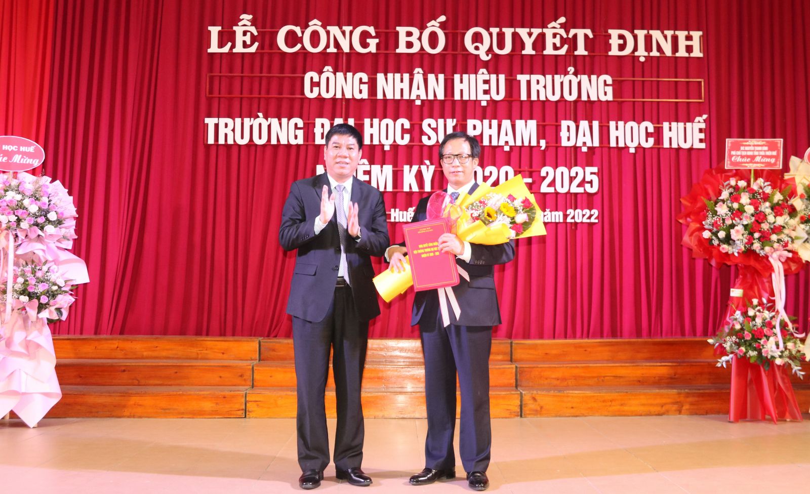 PGS.TS. Huỳnh Văn Chương, TUV, Bí thư Đảng ủy, Chủ tịch Hội đồng ĐH Huế trao Nghị quyết công nhận Hiệu trưởng Trường ĐH Sư phạm, ĐH Huế cho PGS.TS. Lê Anh Phương