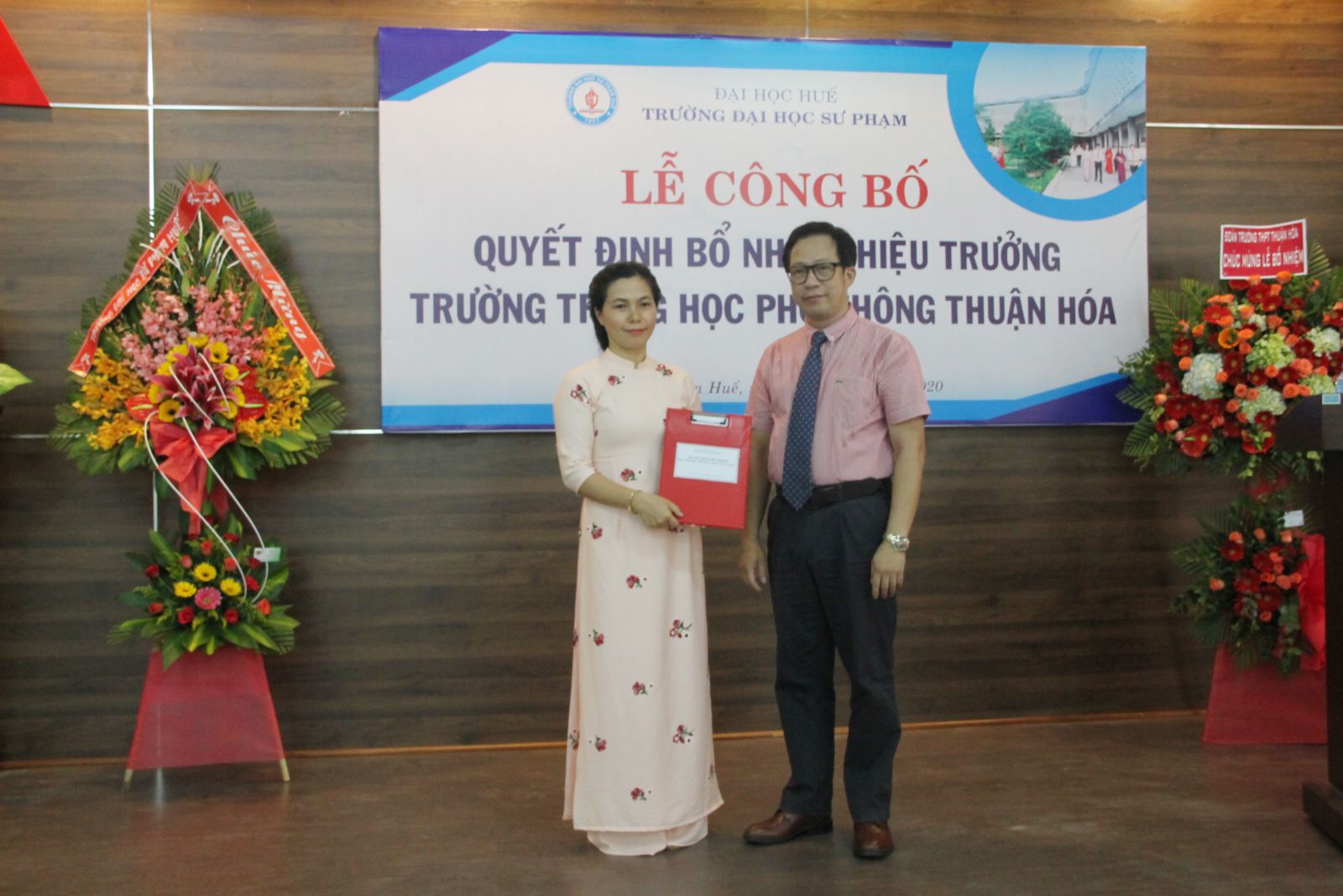 Tại buổi lễ, PGS. TS. Lê Anh Phương, Hiệu trưởng Trường ĐH Sư phạm, ĐH Huế đã trao quyết định bổ nhiệm Hiệu trưởng Trường THPT Thuận Hóa cho TS Nguyễn Thị Thủy, nguyên Phó trưởng Khoa Vật lý, trường ĐH Sư phạm, ĐH Huế.