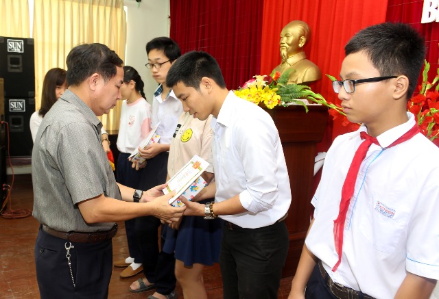 Lãnh đạo công đoàn ngành y tế phát quàn biểu dương các học sinh có thành tích cao năm học 2017-2018