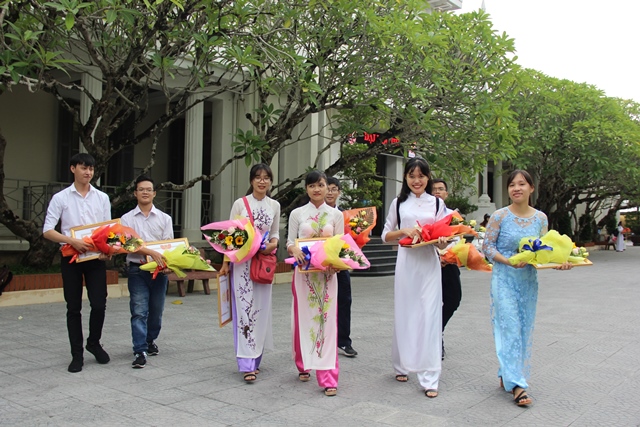 Sinh viên các cơ sở giáo dục thuộc ĐH Huế vui mừng sau lễ khen thưởng các tân thủ khoa đầu năm học 2017 - 2018