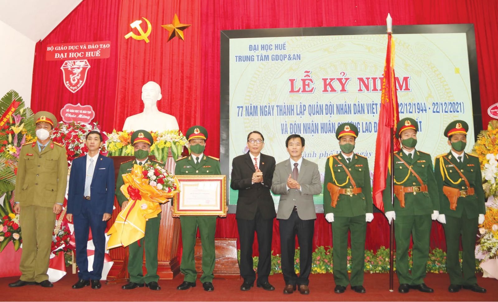 Thầy giáo Nguyễn Quang Linh, Giám đốc ĐH Huế, kiêm Giám đốc Trung tâm GDQP-AN ĐH Huế đón nhận Huân chương Lao động hạng Nhất