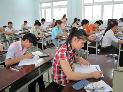 Thí sinh làm bài thi tại điểm thi Trường đại học Khoa học - Đại học Huế trong kỳ thi tuyển sinh CĐ, ĐH 2013 (Ảnh: Ngọc Hà)