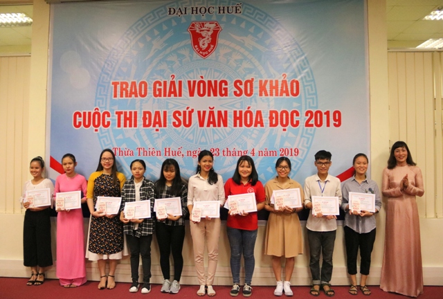 * Cũng trong chiều 23/4, tại Trung tâm Học liệu, ĐH Huế tổ chức trao giải vòng sơ khảo cuộc thi Đại sứ văn hóa đọc 2019.