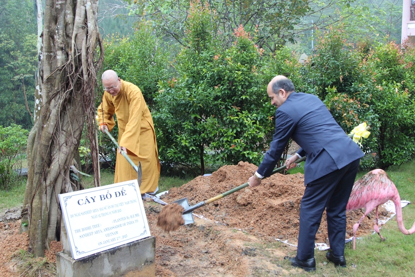 Nhân chuyến thăm đầu năm mới, Đại sứ Ấn Độ tại Việt Nam đã trồng cây Bồ đề lưu niệm trong khuôn viên Học viện PGVN tại Huế.