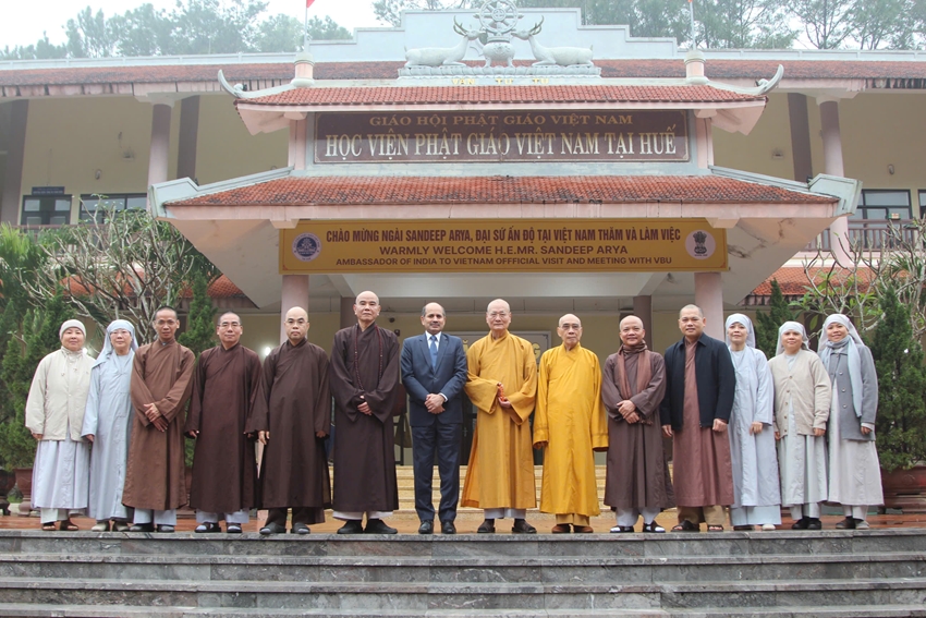 Đại sứ Sandeep Arya đã bày tỏ cảm ơn về sự tiếp đón chu đáo của Học viện PGVN tại Huế; ngài Đại sứ cũng đồng thời chia sẻ nhiều thông tin về giáo dục Phật giáo tại Ấn Độ -nơi đã và đang có rất nhiều thế hệ Tăng Ni Việt Nam tham gia nghiên cứu, học tập.