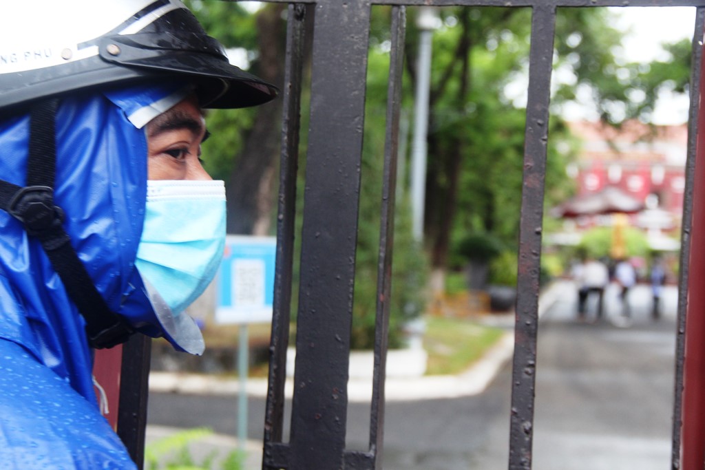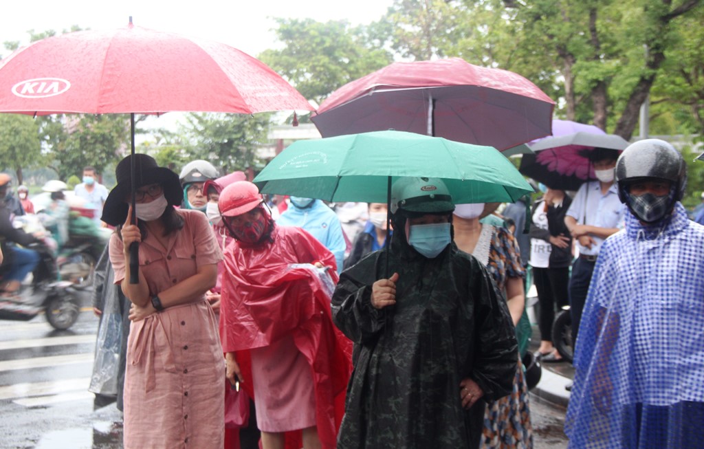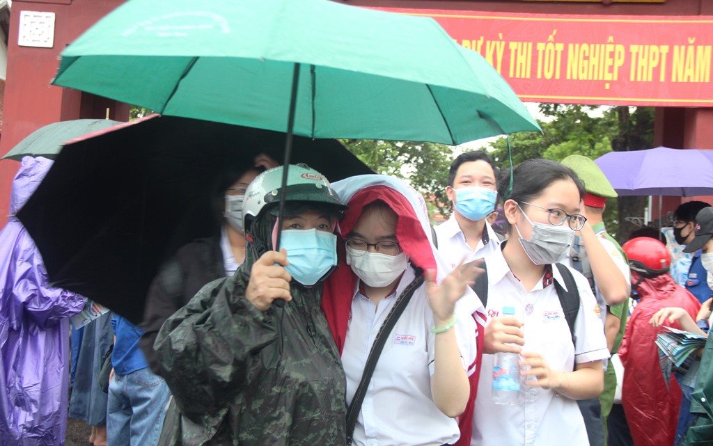 Chở con đến điểm thi hội đồng thi Trường THPT Hai Bà Trưng khá sớm, trong bộ áo mưa cùng chiếc khẩu trang kín mít, chị Nguyễn Thị Hương mới thở phào nhẹ nhõm. Con vào trong trường thi, chị quyết định đứng bên ngoài trường chờ con làm hết bài thi môn ngữ văn rồi lại chở con về. “Mình biết mình lo lắng bao nhiêu, thì con nó cũng áp lực bấy nhiêu. Mấy ngày qua trời nắng nóng lại chuyển sang mưa, nên sức khoẻ của con ít nhiều cũng ảnh hưởng”, chị Hương chia sẻ.