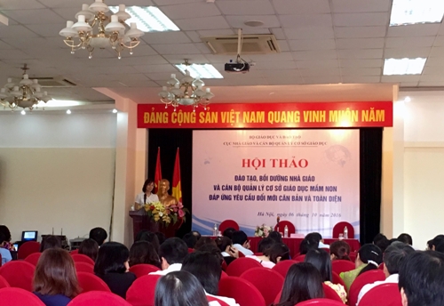 Báo cáo về thực tế giáo dục mầm non bà Nguyễn Thị Thúy Hồng, Phó Cục trưởng Cục Nhà giáo và Cán bộ quản lý cơ sở giáo dục - cho biết: Năm học 2015– 2016, toàn quốc có 442.697 cán bộ quản lý cơ sở giáo dục mầm non, giáo viên và nhân viên (tăng hơn 103.000 so với năm học 2010- 2011). Bộ Giáo dục và Đào tạo đã có chiến lược phát triển giáo dục mầm non, đi vào tập trung đổi mới đồng bộ các yếu tố của chương trình giáo dục mầm non về mục tiêu, nội dung, phương pháp, phương tiện, hình thức tổ chức các hoạt động chăm sóc, giáo dục cho trẻ theo hướng lấy trẻ làm trung tâm.