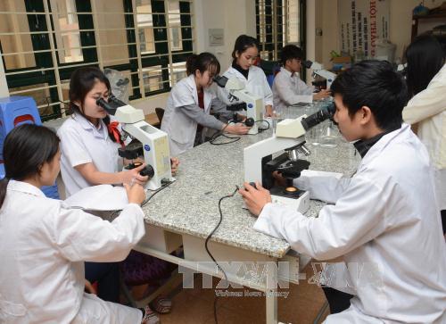 Sinh viên đại học Khoa Hóa – Sinh (Trường Đại học Tây Bắc) trong giờ thực hành môn Sinh học. Ảnh: Quý Trung/TTXVN