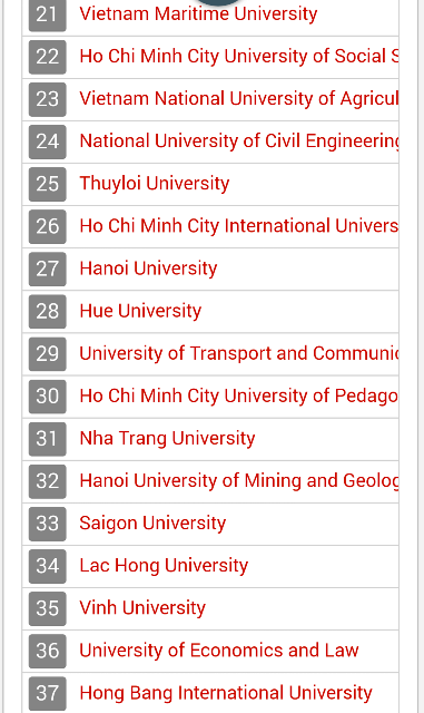 Danh sách bảng xếp hạng, ĐH Huế ở vị thứ 28.