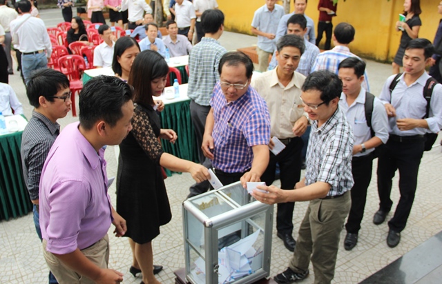 Các cán bộ, viên chức, người lao động của các đơn vị trực thuộc ĐH Huế ủng hộ vào thùng quyên góp