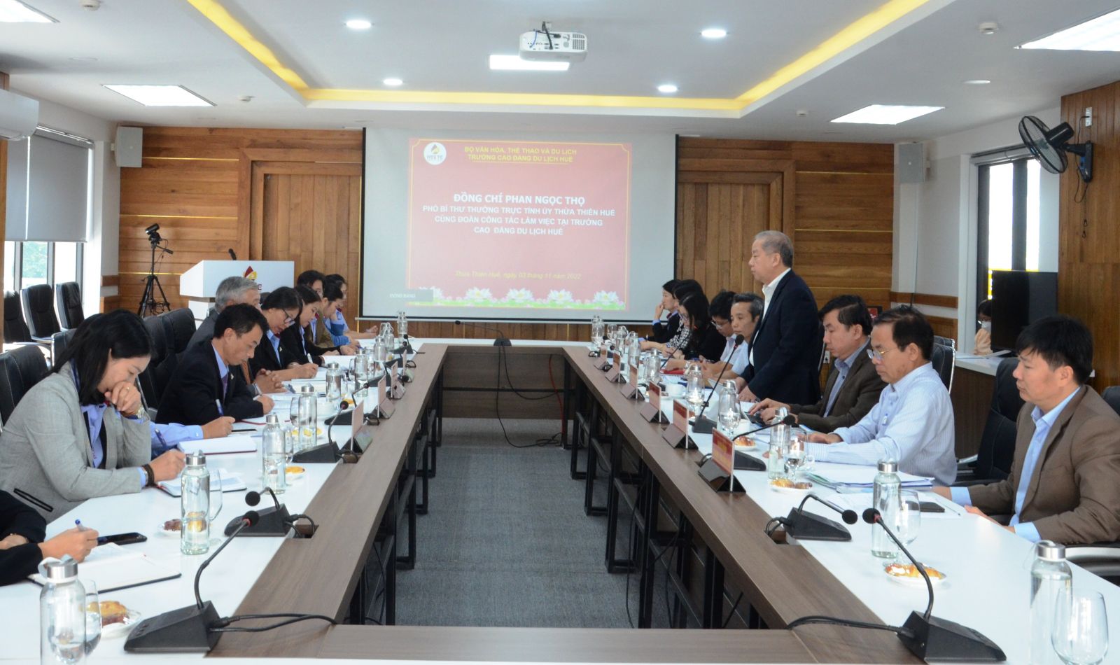 Kết luận buổi làm việc, Phó Bí thư Thường trực Tỉnh ủy Phan Ngọc Thọ bày tỏ vui mừng khi trường khẳng định được vai trò, vị trí trong lĩnh vực đào tạo nghề du lịch. Ông Phan Ngọc Thọ đánh giá cao tinh thần đoàn kết, sự nỗ lực của tập thể nhà trường, đội ngũ giảng viên có tâm huyết, am hiểu chuyên môn, am hiểu thực hành, có trình độ, chuyên môn cao. Đồng thời đề nghị nhà trường tiếp tục hội nhập vươn lên là cơ sở hàng đầu về đào tạo nghề trong cả nước, tiếp tục thu hút và lan tỏa nguồn nhân lực đào tạo về du lịch, đặc biệt phải hướng tới mục tiêu đạt tiêu chuẩn Đông Nam Á.