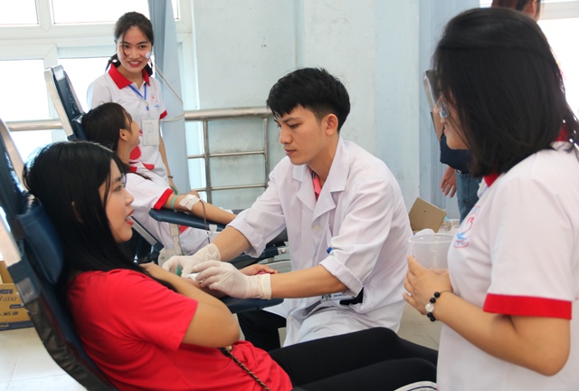 Nhiều sinh viên nữ cũng tham gia hiến máu