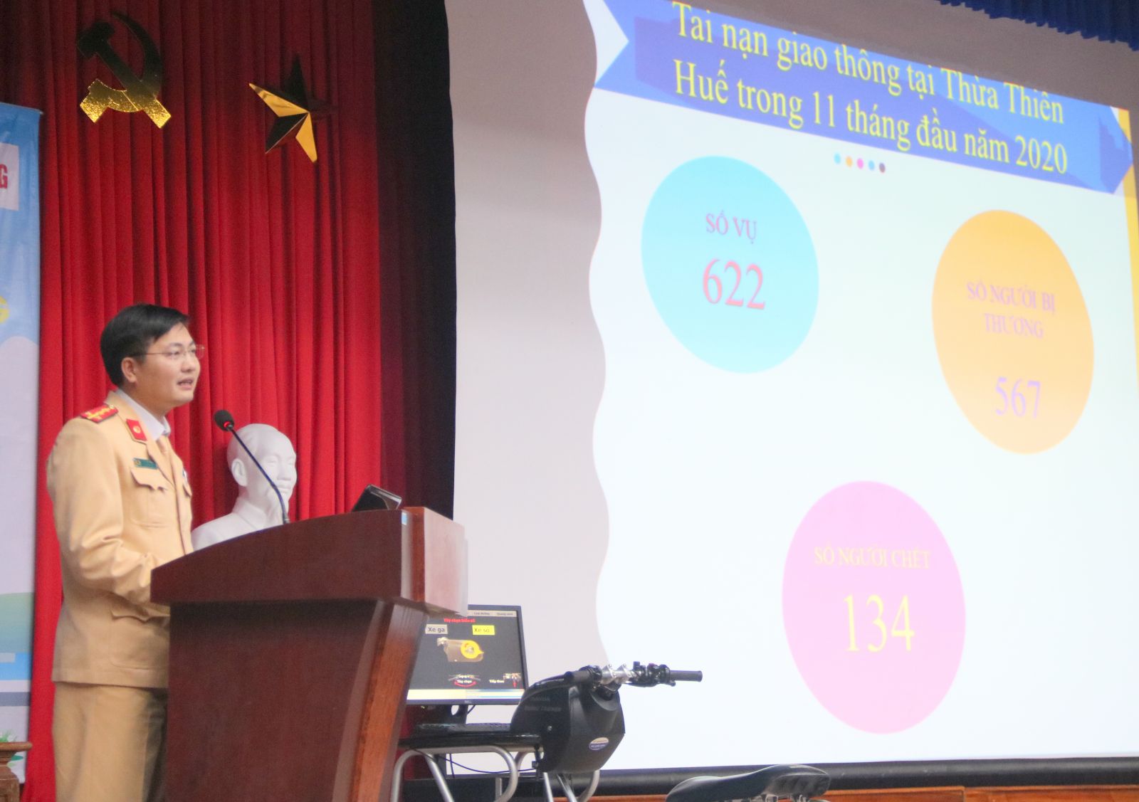 Đại úy Lê Chí Tùy, Đội trưởng Đội Tham mưu Phòng Cảnh sát giao thông - Công an tỉnh chia sẻ với sinh viên