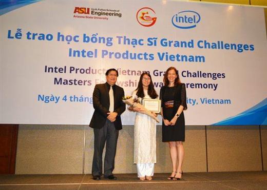 Học bổng Thạc sĩ Kỹ thuật “Intel Grand Challenges” do Công ty Intel Products Vietnam (IPV) tài trợ. Trong đó Hoàng Thị Khánh Hà, Hồ Hoàng Hải Nam nhận được học bổng 65.000 USD/suất để theo học chương trình thạc sĩ chuyên ngành Kỹ thuật và Khoa học vật liệu và Lê Phước Trí nhận được học bổng 75.000USD/suất để theo học chương trình thạc sĩ chuyên nghiệp chuyên ngành Kỹ sư năng lượng mặt trời và thương mại hóa tại Đại học bang Arizona - ASU (Hoa Kỳ).