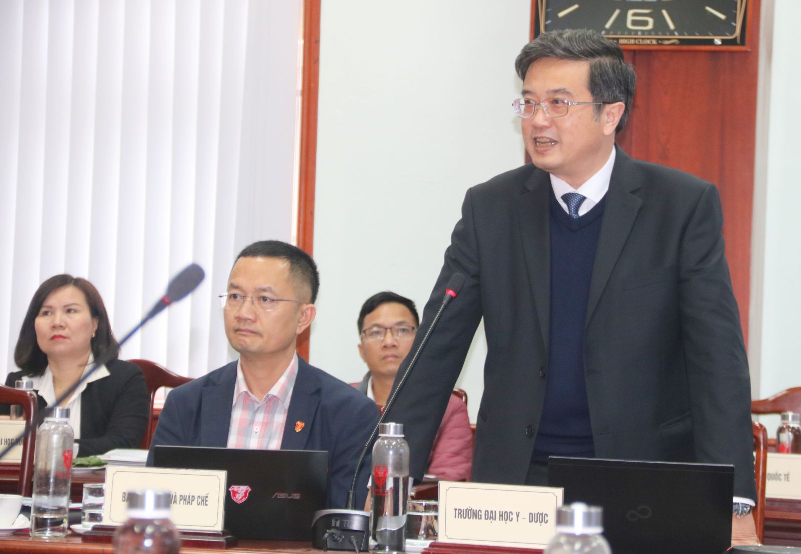 GS.TS. Nguyễn Vũ Quốc Huy, Hiệu trưởng Trường ĐH Y - Dược, ĐH Huế trao đổi nhiều vấn đề tại buổi làm việc