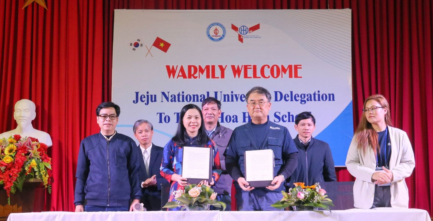 Trong buổi lễ chào cờ đầu tuần ngày 9/1, Trường THPT Thuận Hóa, Trường ĐH Sư phạm, ĐH Huế và Trường ĐH Sư phạm trực thuộc ĐH Quốc gia Jeju - Hàn Quốc cùng ký kết biên bản ghi nhớ (MOU) với các lĩnh vực hợp tác: Trao đổi học sinh, sinh viên; các dự án nghiên cứu chung trong các lĩnh vực cùng quan tâm; thúc đẩy các hoạt động giáo dục quốc tế (chương trình dự giờ, thực tập giảng dạy); tham gia hội thảo hoặc hội nghị do một trong hai trường tổ chức; trao đổi thông tin về các hoạt động nghiên cứu, hoạt động giáo dục và xuất bản.